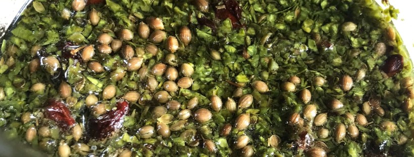 For my faux Chartreuse infusion, I used a recipe from Homemade Liqueurs and Infused Spirits featuring eight herbs and spices, much fewer than the alleged secret blend of 132 in Chartreuse. The homemade version was delicious but didn’t look like the real thing due to my omission of artificial or natural dyes. It doesn’t need to be used as an alcoholic beverage – it makes a good drizzle for fish and poultry or an herbal marinade.